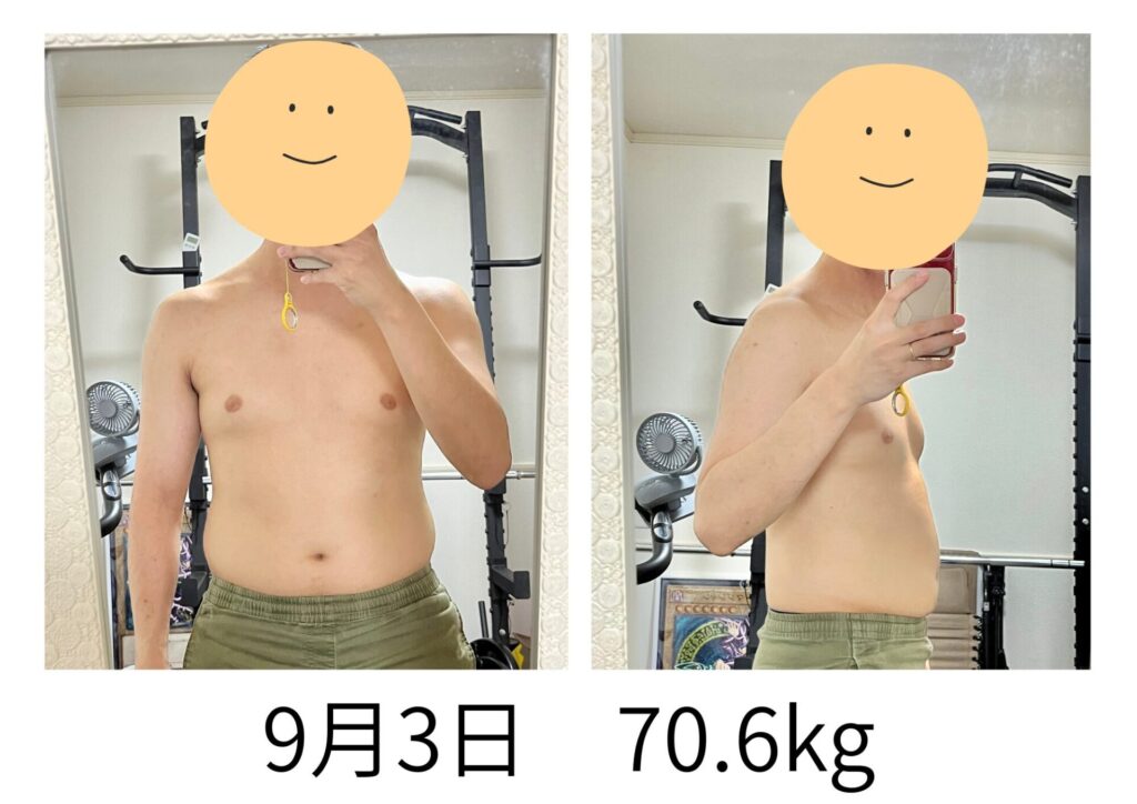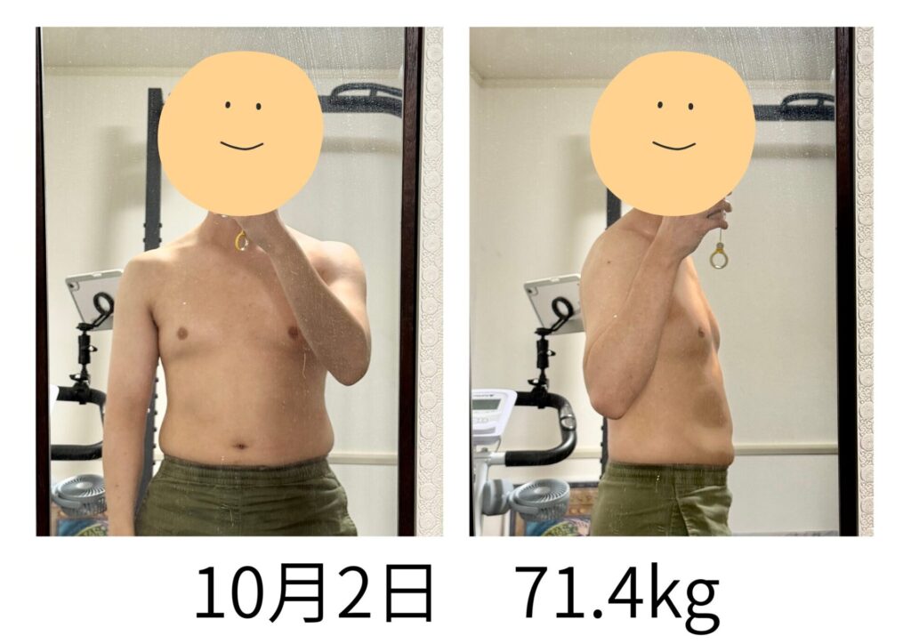 自分で思っていたよりも写真で見ると腹の肉が大量についている。がその割に体重はそこまでではないなというのが正直な感想。