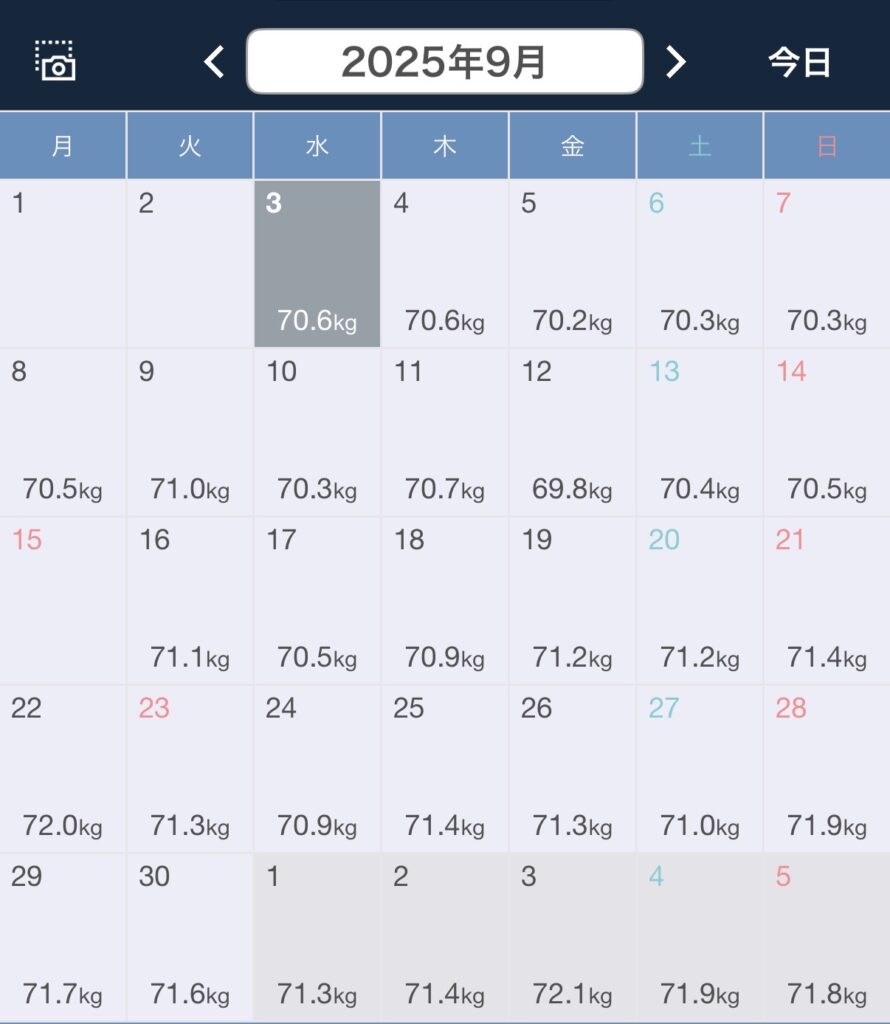 体重は毎朝起床してからすぐにトイレに行き、そのときに出るものを出し、下着一枚で計測している。