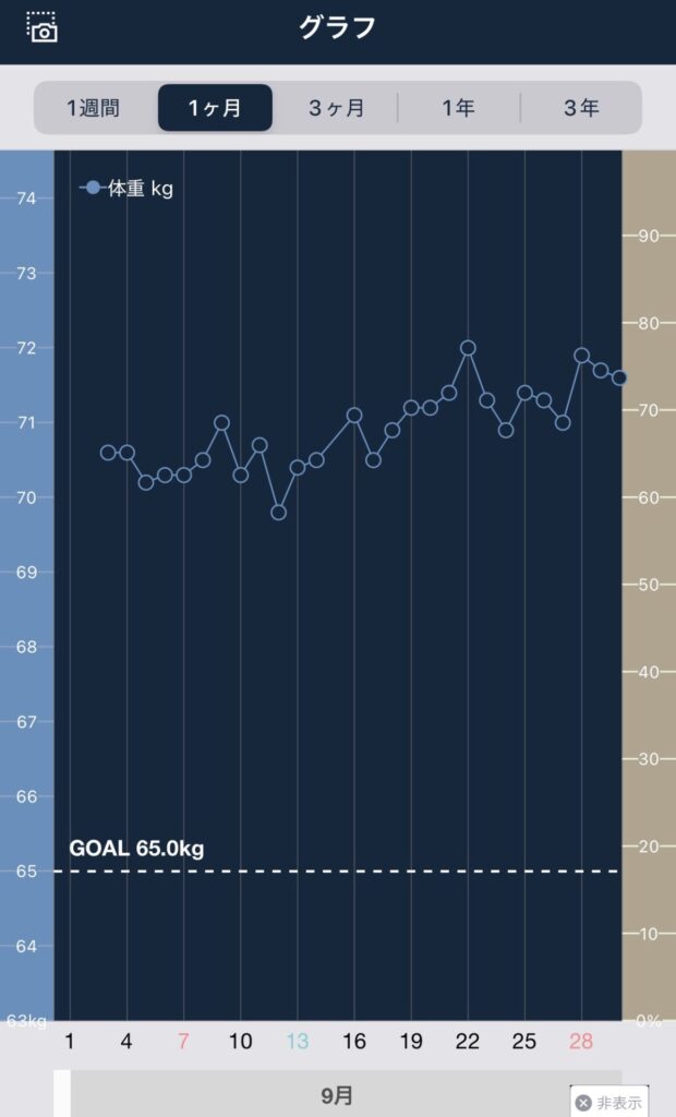 9月から11月の3ヶ月は職場復帰の前に筋トレ習慣をつけることがメインの目的なのでそこまでは結果が出なくても愚直にトレーニングを続けるしかないと思っている。