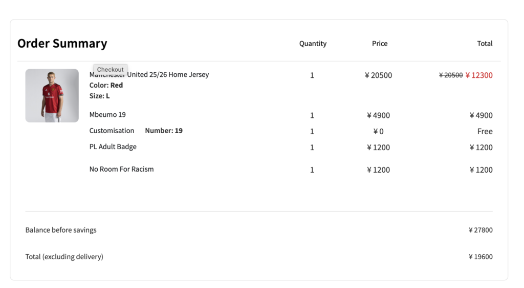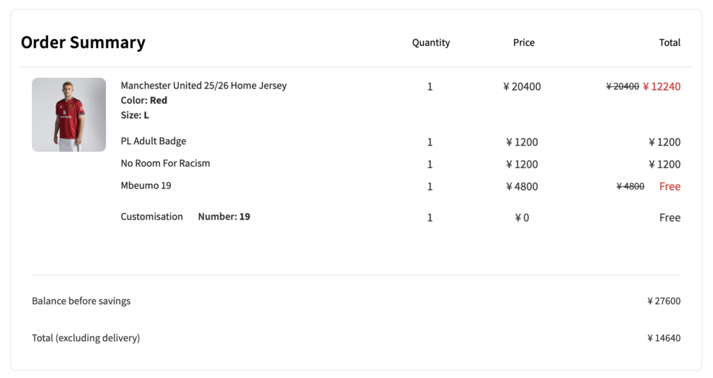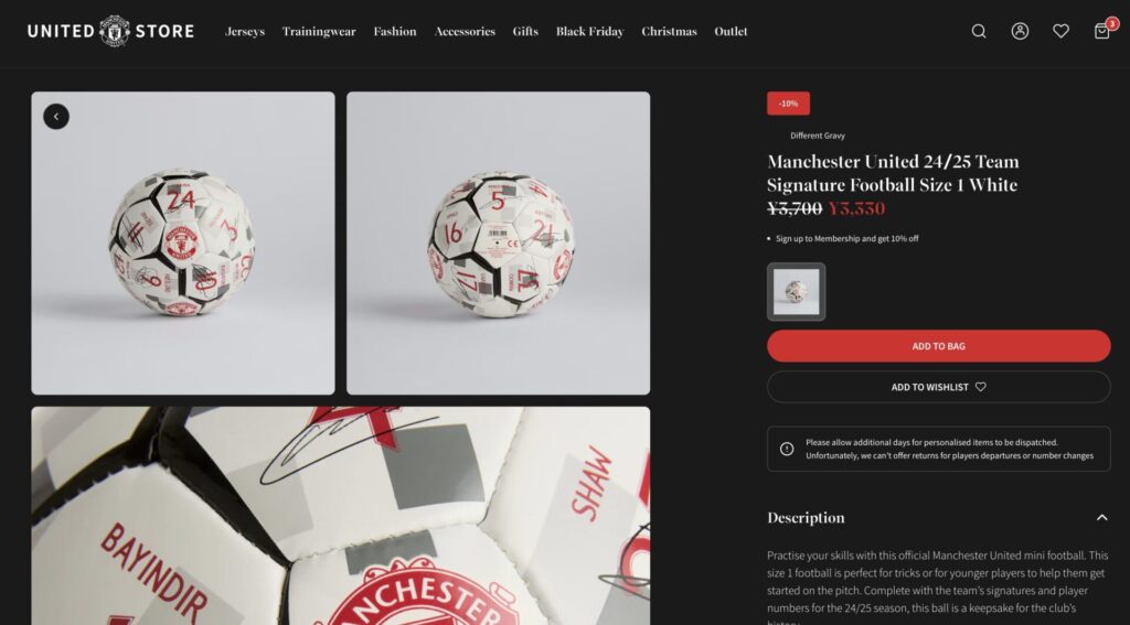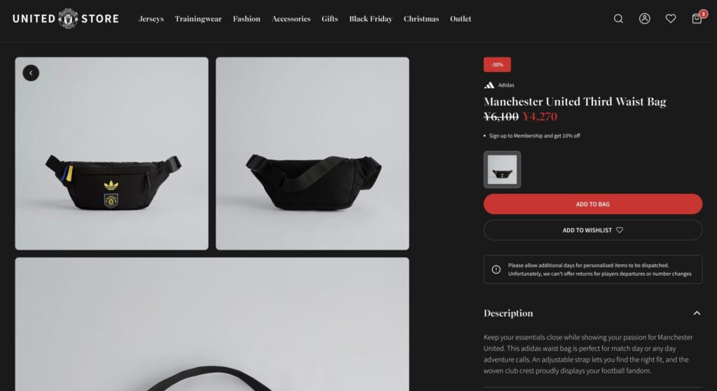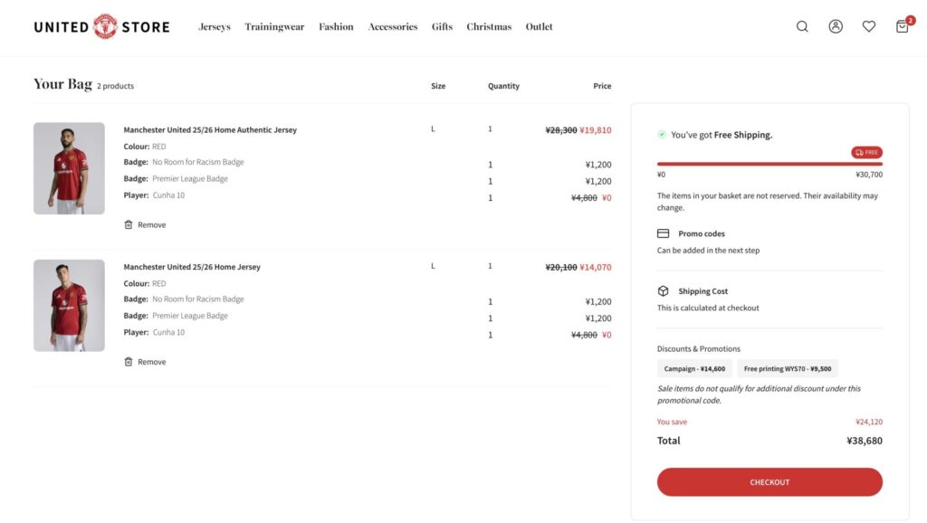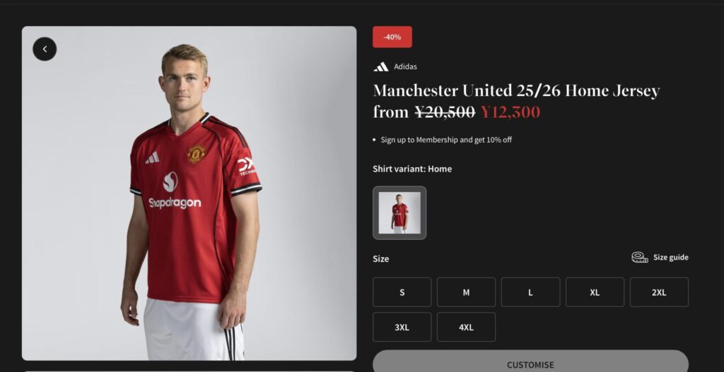 海外サッカーのユニフォームは頻繁にセールになる。私はマンチェスターユナイテッドの公式サイトを細かく追っているが本当に多い。ただ1回のセール期間が短かったり、ジャンルごとに値引きされていたりするので、ほしいものがあるならサイトをこまめにチェックしたほうがよい。